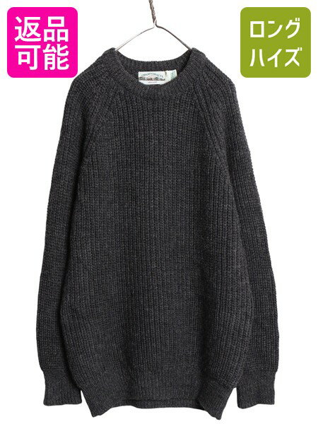 【2/5 30名限定1000円OFF×最大半額】 アイルランド製 ★ aran crafts ウール チャンキー ニット セーター メンズ M / リブ編み 無地 ローゲージ クルーネック チャコール グレー| 古着 中古 ブラック 黒 系 アランニット ニットセーター 長袖ニット 長袖セーター ウールニ 16,500 ~
