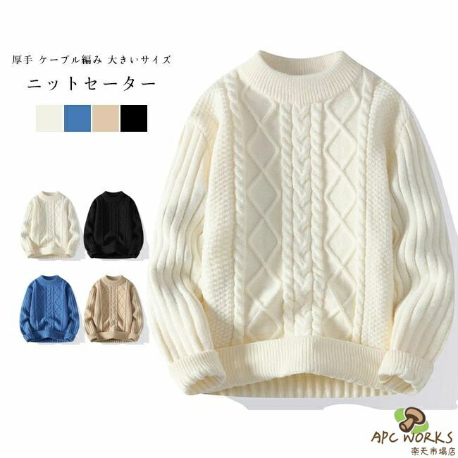 メーカー希望小売価格はメーカーカタログに基づいて掲載しています商品詳細立体感のあるケーブル編みが特徴のメンズセーターが登場。 シンプルなデザインでカッコよくおしゃれに着こなせる一枚です。 ★おすすめポイント★●立体感のあるケーブル編み設計がかっこよさを作り出します。 ●裾と袖がリブ編み仕様で冷気が入りにくくて保温性いいです。 ●首周りや袖口、裾はリブ編みで立体的な表情をプラスします。 ●柔らかい素材感でチクチク感がなくて着心地も見た目も大満足。 カラー:ホワイト|ブラック|ベージュ|ブルー素材 ポリエステルサイズ明細:M【cm】 着丈62 肩幅40 バスト92 袖丈62L【cm】 着丈64 肩幅42 バスト98 袖丈64XL【cm】 着丈66 肩幅44 バスト100 袖丈662XL【cm】着丈68 肩幅46 バスト104 袖丈683XL【cm】着丈70 肩幅48 バスト108 袖丈70生産国:中国【送料無料】 ニットセーター メンズ ニットトップス 無地 クルーネック 長袖 厚手 ケーブル編み トップス 大きいサイズ ちくちくしない ゆったり 体型カバー 暖かい シンプル 春秋冬 プルオーバー インナー ニット セーター メンズセーター 立体感のあるケーブル編みが特徴のメンズセーター ニットセーター メンズ ニットトップス 無地 クルーネック 長袖 厚手 ケーブル編み トップス 大きいサイズ ちくちくしない ゆったり 体型カバー 暖かい シンプル 春秋冬 プルオーバー インナー ニット セーター メンズセーター 送料無料 4,554 ~