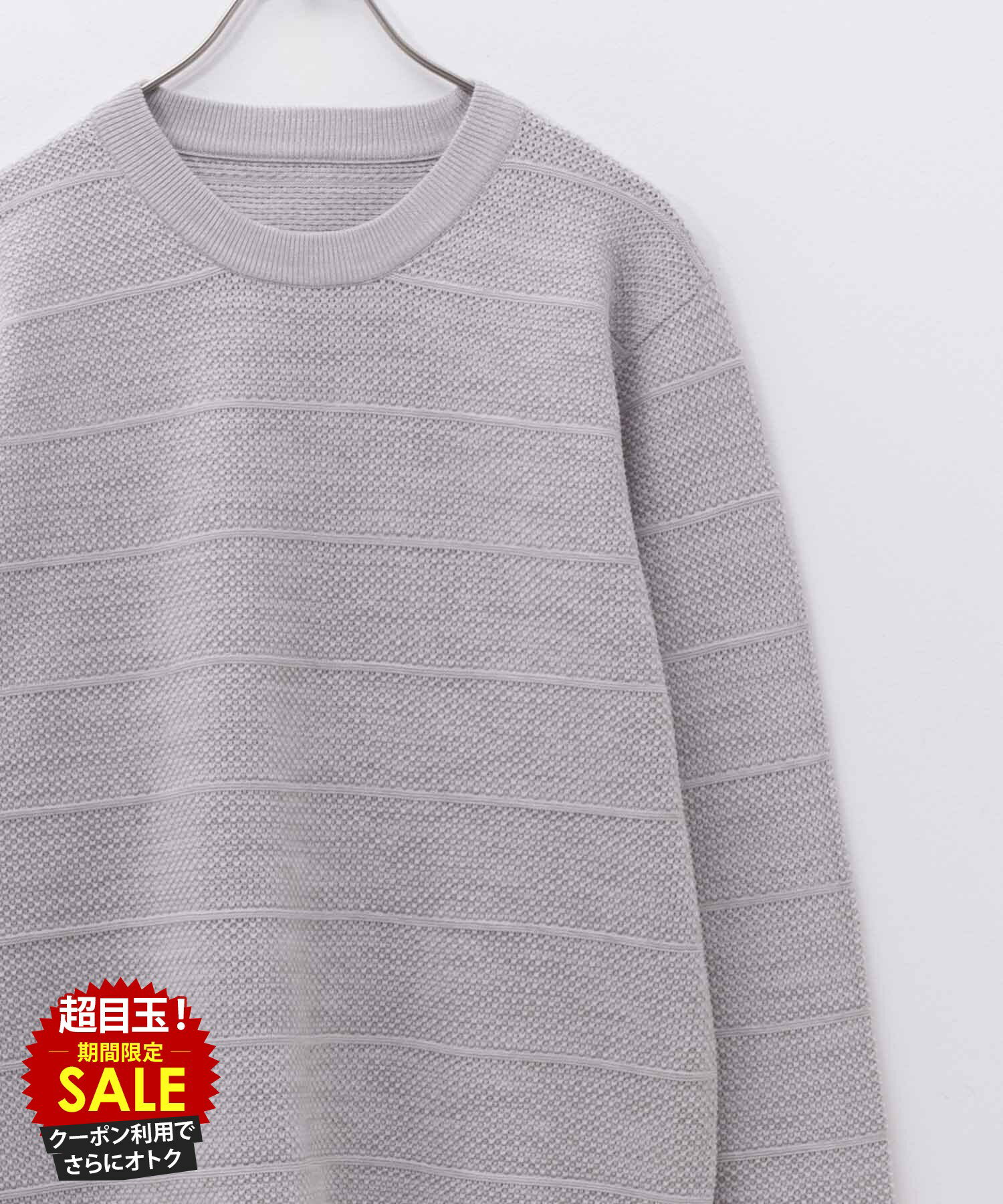 [特別価格★P5倍・まとめ買いクーポン]ニット セーター メンズ 軽量 ストレッチ トップス ボーダー クルーネック プルオーバー 軽快ニット メッシュ 1,980 ~