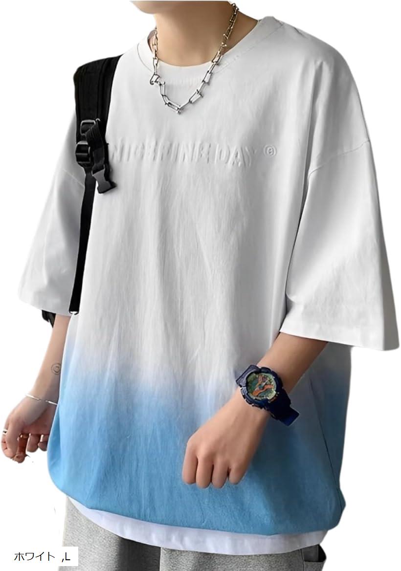 お洒落にキマる メンズ Tシャツ 半袖 グラデーション ストレッチ 速乾 ティーシャツ カットソー トップス ゆったり オーバーサイズ 五分袖 ブルー M グレー XL 2XL パープル オレンジ ホワイト L 2,380 ~