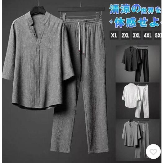 セットアップ メンズ 夏 上下セット 接触冷感 Tシャツ 綿麻風 ロングパンツ パンツ ロング丈 カジュアル ひんやり 父の日 ルームウェア 部屋着 ゆったり 涼しいカラー:ホワイト、ブラック、グレーサイズ:XL(日本M相当) 2XL(日本L相当) 3XL(日本XL相当) 4XL(日本2XL相当) 5XL (日本3XL相当)■素材ポリエステル、その他■注意事項※ホワイトは透け感はやや有り※モデル画像は環境光の影響によりカラーが異なって見える場合がございます。 ※採寸は製造メーカー提供情報ですので、1~3cm誤差が生じる場合がございます。