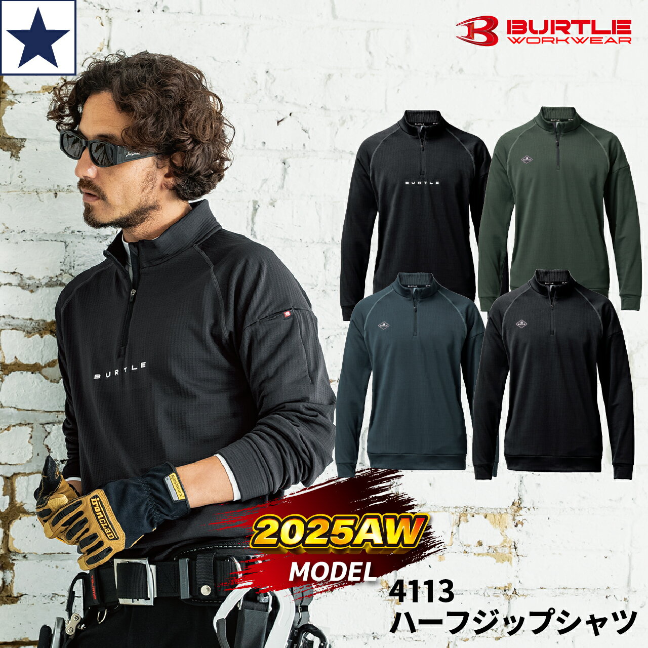 〔即日出荷〕BURTLE バートル 2025年 秋冬 防寒インナー ハーフジップシャツ 4113 ブロックフリース 吸水速乾 ストレッチ 制電 消臭テープ ユニセックス 2,171 ~