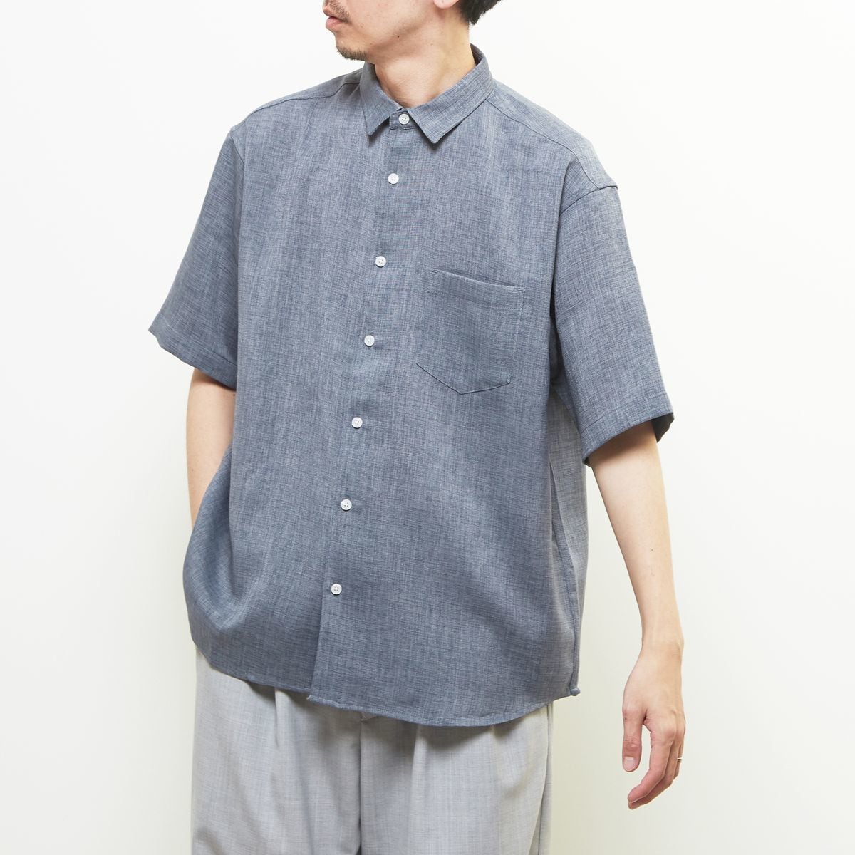 [型番:07082514]【播州織】日本ファブリック・日本縫製 表情豊かなドビーシャツ【デザインポイント】立体感あるドビー織りに、ストレッチ性をプラスして作られた播州織りの生地を仕立てた半袖シャツです。 シャンブレー調のカラーリング、ドビー織りの凹凸感はさらりと肌触りと軽快さが夏におススメな素材感。 癖のないベーシックなスタイリングしやすいシルエット。 軽く柔らかく仕上げた衿は、暑苦しさを感じさせない夏にちょうどいい仕上がり。 ジャケット合わせにも衿元が軽く見えおススメです。 豊かな表情がスタイリングに軽快さやアクセントを作り、大人な印象に仕上がります。 【播州織】兵庫県西脇市を中心とした地場産業で作られる「播州織」。 産地を流れる豊かな川の恵みは糸を先に染める先染め織物に適しており、鮮やかな色彩、やわらかな風合いと長年培われた技術力に裏打ちされた高い品質で世界でも多くの実績を持っています。 ※照明の関係により、実際よりも色味が違って見える場合があります。 また、パソコン・スマートフォンなどの環境により、若干製品と画像のカラーが異なる場合もございます。 ■カラー:4色展開01(S):着丈:70cm B:108cm 袖丈:23cm 肩幅:46cm02(M):着丈:72cm B:111cm 袖丈:24cm 肩幅:47cm03(L):着丈:74cm B:114cm 袖丈:25cm 肩幅:48cm04(LL):着丈:76cm B:118cm 袖丈:26cm 肩幅:49cm※( )で表記されている数字はヌードサイズです。 ヌードサイズとは衣服を身につけない身体のサイズです。 お客様ご自身の身体サイズと比較してお選びください。 ■素材: コットン53% ポリエステル47% ■お手入: >>商品のお取り扱い方法 ■原産国: 日本製【播州織り】ドビーストレッチシャツ/タケオキクチ(TAKEO KIKUCHI)チャコールグレー(013)トープ(854)ネイビー(894)ホワイト(897)画面上と実物では、多少色具合が異なって見える場合がございます。