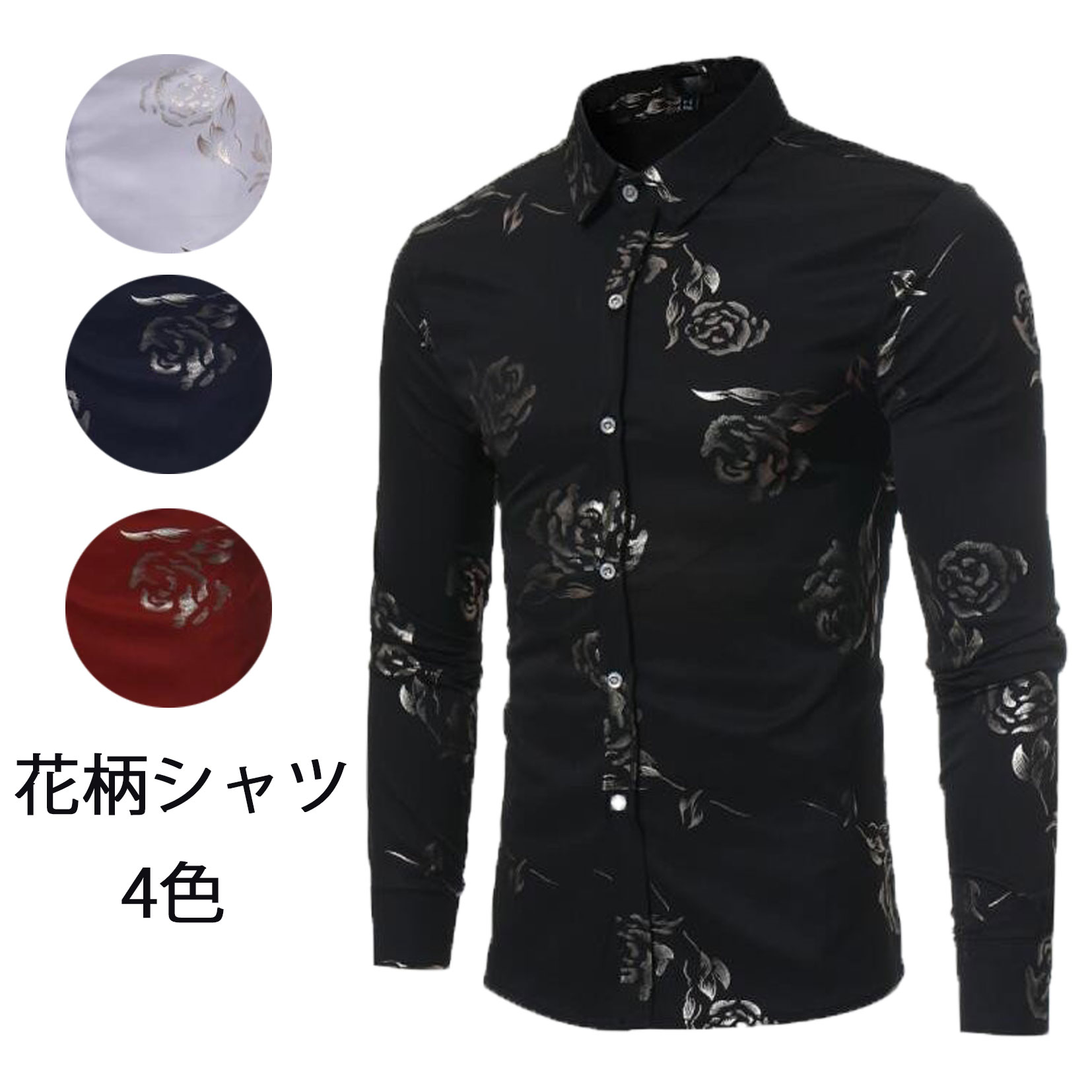 シャツ メンズ ワイシャツ 長袖シャツ スタンドカラー 花柄シャツ ダンス衣装 ステージ衣装 舞台衣装 忘年会 新年会 宴会合唱 団体衣装 余興 パーティー クラブ 4色 2,680 ~