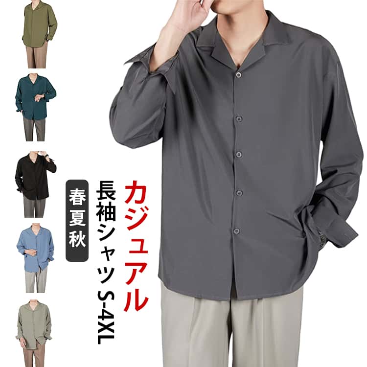長袖シャツ メンズ 長袖シャツ トップス 開襟シャツ 羽織 カジュアルシャツ 無地 大きいサイズ インナー シングル シンプル 柔らかい 男性用 ストリート系 春服 秋服 2,910 ~