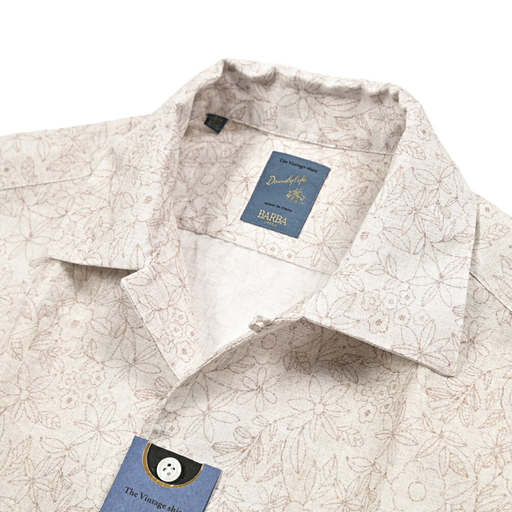DETAIL商品データBARBA / バルバBARBA(バルバ)は、1988年にアントニオ・バルバ氏によって創業されたシャツブランド。 ブランドの基礎となっているのは、「古代ナポリの仕立て (l'antica sartoria Napoletana)」 と呼ばれる伝統的な手仕事の技術です。 襟の取り付け、ボタンホール、そして身体の動きに合わせて設計されたアームホールといったシャツのキモとなる重要な箇所には熟練職人による手縫いが施されています。 この手仕事によって、機械生産では生み出すことのできない、柔らかで身体に馴染むフィット感を実現。 創業当初のドレスシャツから始まり、現在ではリラックスしたシャツジャケットや上質なニットウェアなども展開。 男性のワードローブをトータルで提案するブランドとなっています。 ■品名:シャツ■品番:NEUNCP1054060 U■状態:新品未使用原産国Made in ITALY素材リネン 100%カラー・柄ブラウン / 総柄備考□国内参考価格 37,000円(税抜)□仕様半袖スキッパーカラーSIZEサイズ/寸法首回り肩幅身幅胴幅着丈袖丈【40】M(48)サイズ程度40 cm49 cm58 cm54.5 cm72.5 cm22 cmバルバ すべての商品はこちらPICK UPこの商品を見ている人はこちらもチェックオリアングランサッソ ヘルノピーティートリノベルウィッチムーレーラルディーニタリアトーレチルコロ 1901特集 バルバ 美しいVゾーンで魅せる極上のドレスシャツ2026 春夏新作アイテム バルバ BARBA DANDYLIFE THE Vintage Shirt 麻シャツ 開襟シャツ スキッパー プルオーバー 半袖 メンズ リネン 100% ボタニカル 総柄 ブラウンイタリア ブランド MADE IN ITALY 40,700 ~