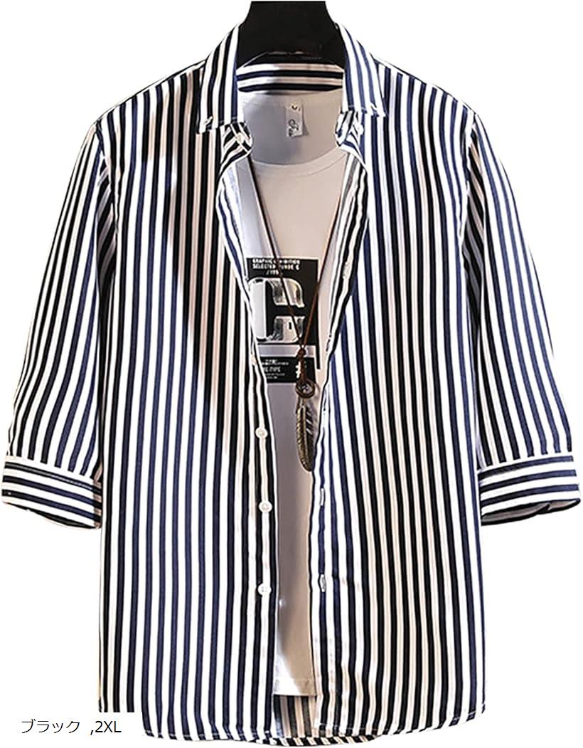 七分袖 ストライプ 半袖 シャツ 七分丈 カラフル カラー 長袖 ロングスリーブ ながそで 長そで 袖あり そであり オーバーサイズ シャカシャカ (ブラック, 2XL) 3,680 ~