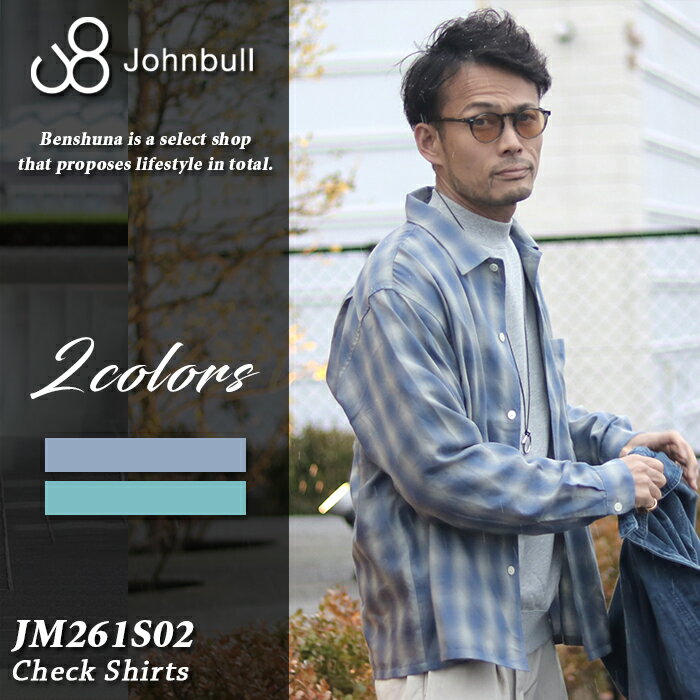 Johnbull ジョンブル オンブレチェックロングスリーブシャツ JM261S02 ブルー グリーン メンズ M-Lサイズ 軽量 ライト素材 スリーシーズン 長袖シャツ チェックシャツ オーバーダイ加工 岡山 児島 ブランド アメカジ 19,800 ~