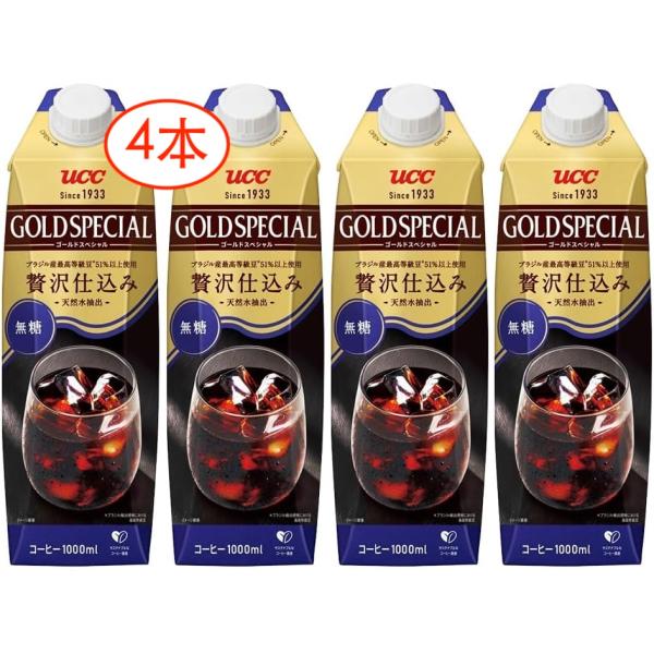 UCC ゴールドスペシャル アイスコーヒー 無糖 紙パック コーヒー 1000ml×4本