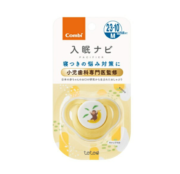 コンビ テテオ 入眠ナビP おしゃぶり M おさるとバナナ 商品説明 『コンビ テテオ 入眠ナビP おしゃぶり M おさるとバナナ』 ●赤ちゃんのほほにも跡がつきにくく、外れにくい薄型・軽量・コンパクト形状なのでおやすみにピッタリ。 ●日本の赤ちゃんのお口の研究から生まれたおしゃぶりは、通気性を高める3つの穴で快適さにもこだわりました。 ●本体部分をホコリや汚れから守るキャップ付き。 お出かけの際にも安心して持ち運びできます。 ●赤ちゃんがねんねしたら、そっと外してあげてください。 【コンビ テテオ 入眠ナビP おしゃぶり M おさるとバナナ 詳細】 原材料など 商品名 コンビ テテオ 入眠ナビP おしゃぶり M おさるとバナナ 内容量 1個 カラー イエロー サイズ Mサイズ 2.3ヶ月〜10ヶ月頃 原産国 中国 販売者 コンビ ご使用上の注意 おしゃぶり以外の用途では使用しないでください。 おしゃぶりをくわえたまま、歩いたり走ったりさせないでください。 転倒して思わぬケガをするおそれがあります。 お子さまが寝ているときは必ずおしゃぶりを外してください。 初めてご使用になる前や、ご使用後に必ず洗浄・消毒をしてください。 必ず保護者の目の届く範囲でご使用ください。 乳首に傷・亀裂・欠けなどがないか引っ張るなどして確認し、異常があった場合は使用しないでください。 長く使用すると、乳首がやぶれて思わぬ事故の原因となります。 1から1.5か月くらいを目安にお取替えください。 広告文責 株式会社プログレシブクルー072-265-0007 区分 ベビー用品コンビ テテオ 入眠ナビP おしゃぶり M おさるとバナナ 1個×10個セット 【10個セット】 コンビ テテオ 入眠ナビP おしゃぶり M おさるとバナナ(1個)×10個セット【正規品】【mor】【ご注文後発送までに3週間前後頂戴する場合がございます】 7,117 ~