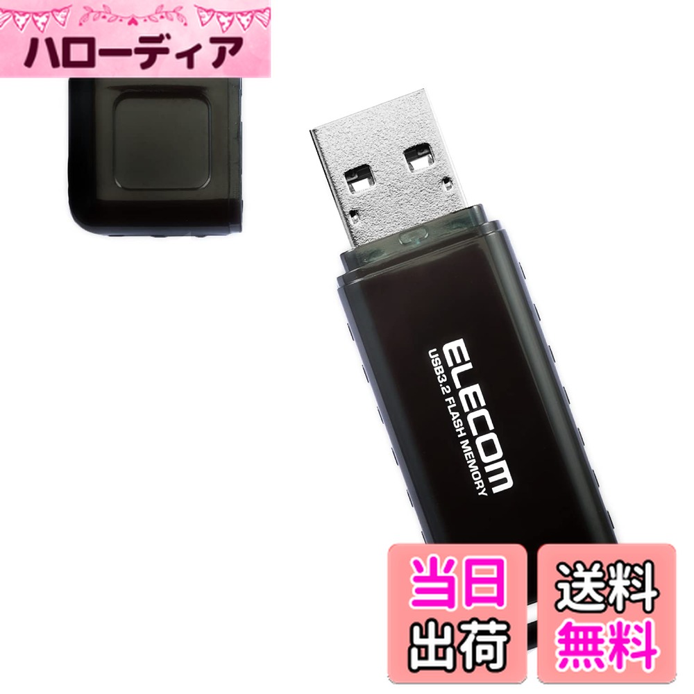 【送料無料】エレコム USBメモリ 32GB USB3.2(Gen1)対応 小型 キャップ付 誤消去防止機能ソフト対応 ブラック MF-USB3032GBK 4,119 ~