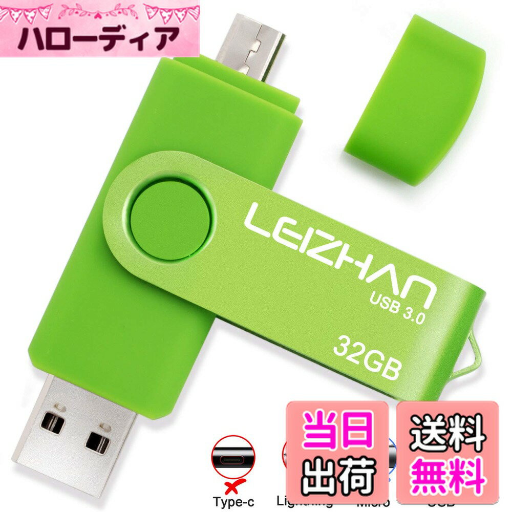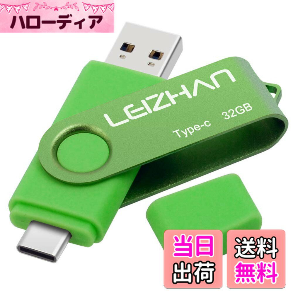 【送料無料】LEIZHAN メモリー・フラッシュドライブ 3.0高速転送 USB 32G 128G OTG 回転式 携帯電話用 容量不足解消 マイクロペンドライブ 回転式USB Android 0.0 Uスティック 色:グリーン、サイズ:64GB 2,759 ~