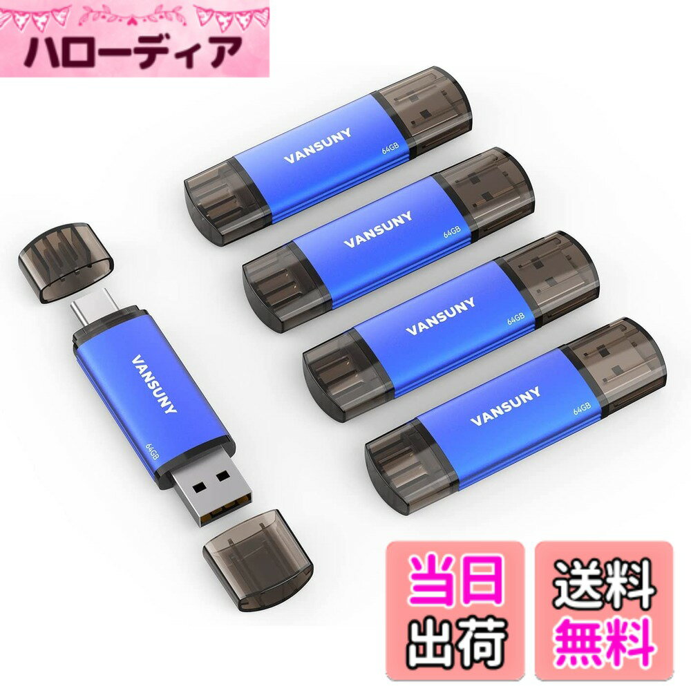 【送料無料】Vansuny USBメモリ Type C 64GB 5個セット USBフラッシュドライブ 2in1 OTG USB 2.0 + USB Cメモリ タイプC 64ギガ (青) 7,739 ~