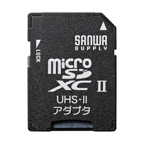 ※不良を除いて返品不可。 ※製品イメージは実際の製品と異なる場合があります。 ※メーカーにより、JANや型番等は予告なく変更されることがあります。 (同等商品により返品・交換は不可となります。 )※商品の詳細につきましてはメーカーホームページからご確認ください。 ※PSEマークについて商品説明に記載がなくても(PSE対象外を除いて)PSEマークがついた商品のみ扱っております。 ■製品タイプ:メモリカードアダプタ ■グリーン購入法:非適合 ■RoHS指令:適合 ■電気用品安全法(PSE):対象外 ■仕様:●対応機種:SD・SDHC・SDXCスロットを持つ携帯電話、デジタルカメラ、デジタルビデオカメラ、パソコン、カードリーダー、ゲーム機●対応メディア:microSDXCカード Class10(UHS-I・II) 128GBまで、microSDHCカード Class2/4/6/10 32GBまで、microSDカード 2GBまで、T-Flash 2GBまで ※対応は機器側に依存します。 ●サイズW24xD32xH2.1(mm)●重量:約1.5gSD・SDHCスロット搭載機器でmicroSD・microSDHCカードが読めます。 SD・SDHCスロット搭載機器でmicroSD・microSDHC・microSDXCカードを読み書きするためのアダプタ。 UHS-II対応。