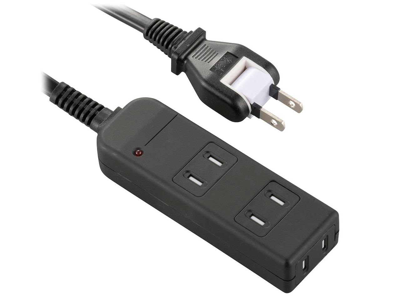 ■サイズ・色違い・関連商品■ブラック[当ページ]■ホワイト■商品内容■机などに挟んで使えるクリップ機構を搭載した、USB-Aポート付きの電源タップです。 ■3つのAC差込口、2つのUSB-Aポートを備えており、USBケーブルによる充電も可能です。 ■タップを常設できないダイニングテーブルなどに一時的に電源を設置できます。 ホットプレートなどの調理機器の利用や、テレワークや宿題をする際に便利です。 ■約15〜35mmの厚さの板に設置が可能です。 設置する際はUSB-Aポートが上向きになるようにしてください。 ■ACアダプターなどの大きなプラグを接続しても隣の差込口に干渉しにくいよう、それぞれの差込口で向きを変えて配置しています。 ■板との接地面はラバー仕様となっており、傷防止や滑り止め効果があります。 ■下グリップには直径約10mmの吊り穴を搭載しており、使用しないときに壁のフックなどに掛けて収納することができます。 ■差込口にプラグが挿し込まれていない場合にホコリの侵入を防止する「ホコリ防止シャッター」を装備しています。 ■差込口には耐熱性に優れた熱硬化性樹脂を使用しており、万が一の発熱の際にも融解しにくく、電気火災の防止に有効です。 ■差込口内側の刃受け金具には、変形しにくい0.8mm厚を採用しています。 繰り返し抜き挿ししてもプラグの保持力が低下しにくく、差込口の発熱を抑制します。 ■誘導雷による最大12500Vまでの雷サージを吸収する素子(バリスタ)を搭載し、接続機器を保護します。 (※最大サージ電圧12500VはJEC210/212規格に基づく数値です。 受けた電圧や回数により性能は劣化します。 ) ■差込口には極性による栓刃幅の違いがある2ピンプラグも接続可能です。 ■電源プラグには極性による栓刃幅の違いはありませんが、接続機器で極性を合わせる必要がある場合、コンセントの長い方の穴と電源プラグにあるELECOMロゴ(ELECOMとだけ書かれている面)の頭文字「E」側を合わせて挿し込んでください。 ■電源プラグには栓刃間に火災の原因となるトラッキング現象防止に有効な熱硬化性樹脂を配し、感電の危険を抑制する絶縁スリーブを装備しています。 ■狭い場所でも配線しやすい180度スイングプラグを採用しています。 ■電源コードには一般社団法人日本配線システム工業会規格(JWDS0010)に適合した二重被ふくコードを採用しており、断線や被ふく破れによる感電・火災の防止に有効です。 ■柔軟で取り回しがしやすい、並行2芯線の平型コードです。 ■自社環境認定基準を1つ以上満たし、『THINK ECOLOGY』マークを表示した製品です。 ■環境保全に取り組み、製品の包装容器におけるプラスチック重量を、社内基準製品より20%以上削減した製品です。 ■環境保全に取り組み、製品の包装容器が紙・ダンボール・ポリ袋のみで構成されている製品です。 ■商品スペック■差込口仕様 : 2ピン(極性のある2ピン式プラグも接続可能) ■差込口個数 : 3個口 ■プラグ仕様 : 2ピン ■ACコード長 : 2.5m ■USB端子形状 : USB-Aポート×2 ■AC側定格 : 14A、125V、合計1400Wまで ■USB側定格入力 : AC100V-240V、50/60Hz、0.5A MAX ■USB側定格出力(1ポート使用時) : 12W(5V/2.4A) ■USB側定格出力(2ポート使用時) : 合計12W(5V2.4A) 各ポート12W(5V/2.4A) ■極性対応 : △(差込口は対応、プラグは目印のみ) ■スイッチ : × ■雷ガード : ○ ■ほこりシャッター : ○(AC差込口のみ) ■抜け止め機能 : × ■差込口キャップ : ○(USBポートのみ) ■通電表示ランプ : × ■二重構造 : ○ ■二重被ふく : ○ ■絶縁キャッププラグ : ○ ■スイングプラグ : ○ ■固定方法 : クリップ機構による机などへの仮固定が可能 ■マグネット : × ■吊り穴 : ○(φ10mm) ■ブレーカー : × ■ノイズフィルター : × ■モジュラージャック : × ■連動機能 : × ■変換アダプタ : × ■カラー : ブラック ■材質 : ポリカーボネート樹脂、PVC樹脂、ユリア樹脂、黄銅、銅 ■外形寸法 : 幅114mm×奥行134mm×高さ103mm ※コード部分およびプラグ部分を除く ■質量 : 約398g ■付属品 : 取扱説明書 ■環境配慮事項 : THINK ECOLOGY対応製品 ■使用可能地域 : 日本国内専用 ■法規 : ◇PSE(特定電気用品) ■保証期間 : 1年間■送料・配送についての注意事項●本商品の出荷目安は【4 - 7営業日 ※土日・祝除く】となります。 ●お取り寄せ商品のため、稀にご注文入れ違い等により欠品・遅延となる場合がございます。 ●本商品は仕入元より配送となるため、沖縄・離島への配送はできません。 [ T-U05-3225BK ] エレコム 電源タップ 延長コード USB付き 2.5m クリップ式 雷ガード ブラック T-U05-3225BK 5,650 ~