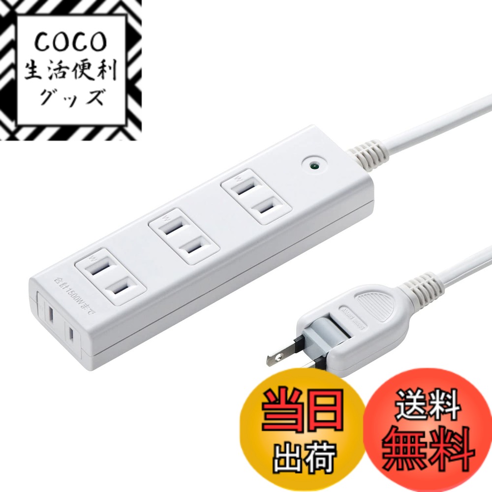 商品情報商品の説明●雷ガードを内蔵しており、接続機器を雷から守ります。 雷ガード作動中は確認ランプが点灯します。 ※ランプが消えた場合は効果がなくなっていますので新しいものに交換してください。 ●トラッキング火災予防に極めて有効な絶縁キャップ付きのスイングプラグを採用しています。 ●スチール机に仮固定できる便利なマグネット付きです。 ●ホコリの侵入を防ぐ、防止シャッターが付いているので安全です。 ■カラー:ホワイト ■定格容量:15A・125V(1500Wまで) ■プラグ:2P(絶縁キャップ付きスイングプラグ) ■差込口:2P・3個口 ■差込口間隔:34mm ■コード:VFF 1.8スケア(SQ)x2心 仕上り外形寸法 約3.4mmx6.8mm ■コード長:3m ■バリスタ電圧:470V ■制限電圧:775V ■サージ耐量:2500A ■サイズ:W102xD40xH23mm ■使用地域:日本国内のみ。 日本以外ではご使用いただけません。 ■認証:電気用品安全法(PSE)技術基準適合品主な仕様 雷ガードを内蔵しており、接続機器を雷から守ります。 雷ガード作動中は確認ランプが点灯します。 ※ランプが消えた場合は効果がなくなっていますので新しいものに交換してください。 トラッキング火災予防に極めて有効な絶縁キャップ付きのスイングプラグを採用しています。 スチール机に仮固定できる便利なマグネット付きです。 ホコリの侵入を防ぐ、防止シャッターが付いているので安全です。