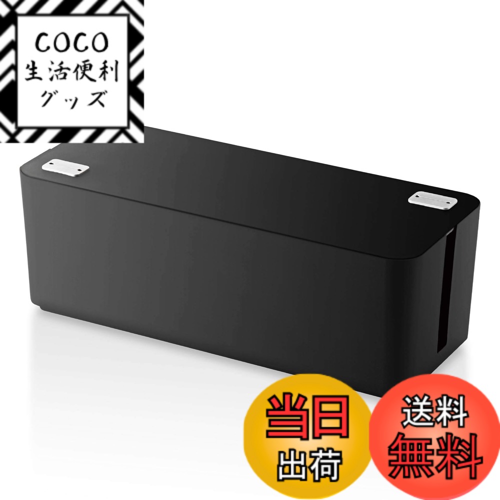 商品情報商品の説明【仕様】 ■サイズ:外形寸法 約幅310x奥行140x高さ110mm※蓋を嵌めた状態 ■サイズ:収納内寸 約幅280mmx奥行110mmx高さ95mm※蓋を嵌めた状態 ■重量:約390g ■材質:ABS樹脂 ■カラー:ブラック ■その他:天面コードホールx6 ■その他:側面スリットx3 ■その他:スタンド機能使用時の推奨端末厚み:10mm以下 【説明】 ■デスクの上のケーブルや端末をスッキリ整理できる、コンパクトで場所を取らないケーブルボックスです。 ■4-6個口の電源タップを収納可能です。 ※形状によっては収納できない場合もあります。 ■タブレット・スマホを立てられるスタンド機能を備えています。 ■天面のフタには、充電端子を通せるコードホールが6箇所設けられています。 ■ボックスの左右どちらからでもコード類を出せるよう、両側面にスリットを施しています。 ■収納したタップのスイッチ操作やケーブルの出し入れが可能な、内部アクセススリットを備えています。 ■ボックス底面には、内部の温度上昇を緩和するスリットを施しています。 ■ボックス底面には、設置時の横滑りや接地面への傷を緩和するシリコンクッションを備えています。 ■電源タップをボックスに収納することでホコリの蓄積を防ぎ、トラッキング現象による火災の防止に役立ちます。 ■ボックス本体の素材には、UL94規格において垂直燃焼性V-0、水平燃焼性HBグレードの難燃性プラスチックを使用しています。 【商品に関するお問い合わせ】 エレコム総合インフォメーションセンター TEL. 0570-084-465 FAX. 0570-050-012 受付時間 / 10:00-19:00 年中無休主な仕様 デスクの上のケーブルや端末をスッキリ整理できる、コンパクトで場所を取らないケーブルボックスです。 4-6個口の電源タップを収納可能です。 ※形状によっては収納できない場合もあります。 タブレット・スマホを立てられるスタンド機能を備えています。 天面のフタには、充電端子を通せるコードホールが6箇所設けられています。 ボックスの左右どちらからでもコード類を出せるよう、両側面にスリットを施しています。