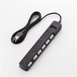 ■商品内容隣の差込口をふさがない!差込口の間隔が広くACアダプタもすっきり接続できる、ほこり防止シャッター付きスリムタップ。 雷ガード内蔵モデル。 ■商品スペック●ACアダプタもすっきり接続できるほこり防止シャッター付きスリムタップです。 ●タップの差込口の間隔が約58mmと通常のタップと比較して広く、ACアダプタもすっきり接続可能です。 ●トップの5個口に加え、サイドに1個口を装備し、幅広の機器を接続する場合に便利です。 ●ACアダプタを5つ挿すことがことができます。 ●雷サージから電子機器を守る、高性能雷サージ吸収素子を内蔵しています。 ●最大サージ電圧12500Vの高性能雷サージ吸収素子(バリスタ)を内蔵していますので、雷によるパソコンやAV機器などの電子機器への被害防止に有効です。 ※最大サージ電圧12500VはJEC210/212規格に基づく数値です。 ●差込口に耐熱性に優れたユリア樹脂を使用し、万一の発熱の際にも融解しにくく、電気火災の防止に有効です。 ●トラッキング現象による火災の防止に役立つ、絶縁キャップ付きのコンセントプラグを採用しています。 ●電源コードには社団法人日本配線器具工業会規格(JWDS0010)に適合した二重被ふくコードを採用しており、断線や被ふく破れによる感電・火災の防止に有効です。 ●未使用時の差込口へのほこりの浸入を防止するほこり防止シャッターを装備しています。 お子様のいたずらによる感電・火災の防止に役立ちます。 ●狭い場所でも配線しやすい180°スイングプラグを採用しています。 ●プラグ仕様は2ピン式で、便利な6個口タイプです。 ●本体差込口形状:2ピン●本体差込口個数:6個口●プラグ仕様:2ピン・スイングプラグ●コード長:1m●定格:125V・15A・1500W●雷ガード:○●ほこりシャッター:○●絶縁キャップ付きプラグ:○●二重被ふく:○●スイングプラグ:○●カラー:ブラック●材質:本体:ABS樹脂、プラグ:PVC 差込口:ユリア樹脂●外形寸法:幅32mm×奥行292mm×高さ26mm ※コード部分及びプラグ部分を除く●質量:約272g●使用可能地域:本製品は日本国内の電源を想定して設計されていますので、日本国外ではご使用いただけません。 ●電気用品安全法:PSE適合■送料・配送についての注意事項●本商品の出荷目安は【4 - 6営業日 ※土日・祝除く】となります。 ●お取り寄せ商品のため、稀にご注文入れ違い等により欠品・遅延となる場合がございます。 ●本商品は仕入元より配送となるため、沖縄・離島への配送はできません。 【 T-NSLK-2610BKX5 】 【5個セット】 エレコム 広々タップ/雷ガード/6個口/1.0m/ブラック T-NSLK-2610BKX5 15,290 ~