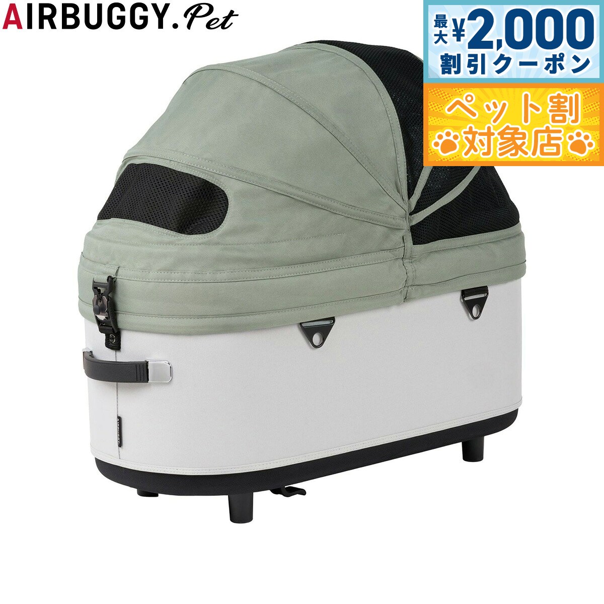 新しくなったDOME3は、室内空間が約20%アップ。 内部空間にゆとりが生まれ、多頭飼いや、より大きな犬種でも快適にお使いいただけるようになりました。 コットは180度開くオープンエアルーフを採用。 左右どちらからでもワンタッチで開閉できます。 持ち運びは、両手のハンドルで安全に。 エアバギーならではの快適な走り心地はそのままに、出入りしやすく、よりスマートに生まれ変わりました。 商品名エアバギー フォー ペット AIRBUGGY FOR PET ペットカート ドーム3 セットブランドAIR BUGGY材質フレーム:アルミニウム・樹脂、コット表地:ポリエステル100%、コット内部:底面PEボード耐荷重20kg大きさフレーム(使用時:H105cm / D96cm / W53.5cm、折畳時:H82cm / D30cm / W53.5cm)コット単体(外 寸:H58.5cm / D72cm / W37cm、内 寸:H52cm / D66cm / W32cm)原産国中国 ラージサイズ:小型多頭、柴犬・ビーグルなどの中型犬、アメリカンコッカーなど体高の高い犬種におすすめ。 標準装備:コット取り付けアダプター、バスケット(17L)、マルチホルダー×2個、リストストラップ、エアポンプ、飛び出し防止用リード(コット内に装備)×2個、取扱説明書DOME3の機能 180度開閉アコーディオンルーフ(左右どちらからでも開閉でき、好きな角度で固定できるオープンエアルーフ。 最大180度開くので、外の様子もよく見えて開放感たっぷり。 日よけとしても使えて、乗り降りもスムーズに。 )ワンタッチFIDLOCK (マグネット内蔵のFIDLOCK を両サイドに採用。 ルーフを近づけると、磁力でロックがかかります。 外す時は指でストラップを引っ張るだけ。 自然に外れることがないので安全性が高く、ワンアクションで開閉できる、スタイリッシュなロックです。 )キャリーハンドル(両サイドのハンドルは、伸縮式ですべりにくく、さらに持ちやすくなりました。 フレームからの着脱や、ちょっとした移動の際、重量のあるペットを乗せてもムリなく安全に持ち運びができます。 )らくらくワンタッチ装着(レバーを引くだけのワンアクションで、フレームから簡単に取り外しが可能。 お部屋でも、クルマでも、どこでもストレスなく持ち運びできます。 )折りたたみ可能(フレームは、ハンドルの左右のレバーを握って降ろせばかんたんに折りたたみ可能。 厚さ30cmになるので、クルマでも玄関でも場所をとりません。 )便利なマルチホルダー(フレームの両サイドには小物や500mlのペットボトルが入るマルチホルダーを装備。 保冷・保温機能付きなので、暑い季節も快適にお散歩できます。 )本体下部に17Lの大容量バスケットを搭載。 両サイドのジッパーで開閉でき、荷物の出し入れもスムーズです。 急な買い物など、荷物が増えても安心です。 (耐荷重5kg)本体重量コット:4.1kg、フレーム+コット取り付けアダプター:8kg、フレーム+コット取り付けアダプター+コット:12.1kgメーカー名株式会社GMPインターナショナルエアバギー フォー ペット AIRBUGGY FOR PET ペットカート ドーム3 セット新しくなったDOME3は、室内空間が約20%アップ。 内部空間にゆとりが生まれ、多頭飼いや、より大きな犬種でも快適にお使いいただけるようになりました。 コットは180度開くオープンエアルーフを採用。 左右どちらからでもワンタッチで開閉できます。 持ち運びは、両手のハンドルで安全に。 エアバギーならではの快適な走り心地はそのままに、出入りしやすく、よりスマートに生まれ変わりました。