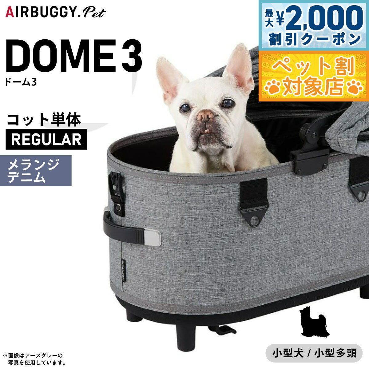 【最大2000円OFFクーポン!&店内ポイント最大62倍!本日限定!】エアバギー ドーム3 コット 単体 レギュラー メランジデニム【送料無料】AIRBUGGY ペットカート 犬 猫 AD3102 25,300 ~