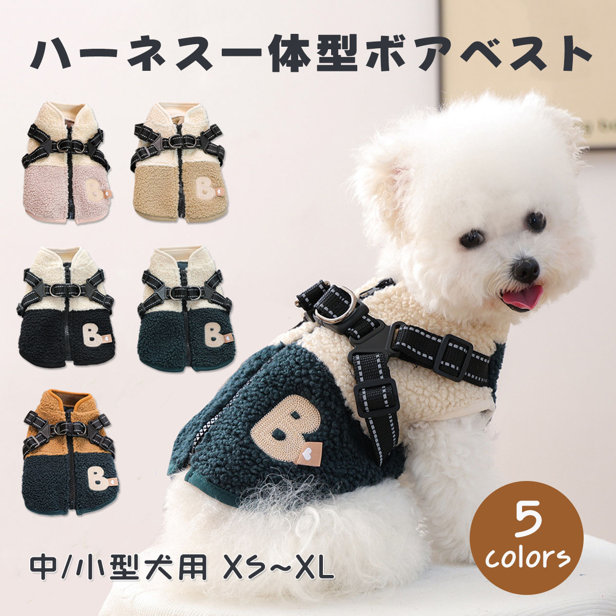 商品説明商品紹介【もこもこ暖か♪】ハーネス一体型 ドッグウェア 秋冬用この商品の6つの「こだわり」ポイント【極上の肌触り】まるで着る毛布!高品質フリース裏地には、ふわふわで柔らかな高品質厚手フリースを採用。 毛玉ができにくく、デリケートなワンちゃんの肌にも優しくフィットします。 保温性抜群なのに通気性も確保しているので、運動して暑くなりすぎても蒸れにくく快適です。 「着た瞬間から暖かい!」 寒がりなワンちゃんも大満足の着心地です。 【準備が1秒! 】便利なハーネス一体型お洋服とハーネスがひとつになりました! 別途首輪やハーネスを装着する必要がないので、服を着せて背中のDリングにリードをカチッと付けるだけでお散歩へGO!ワンタッチバックルでしっかり固定でき、サイズ調節も可能です。 【着脱ラクラク】背中開きファスナー仕様頭から被るタイプが苦手なワンちゃんでも安心の「背中ファスナー」タイプ。 足を通して背中のジッパーを上げるだけなので、着せやすく、脱がせやすい! 【動きやすい】軽量&袖なしベストタイプ袖がないベストタイプなので、前足・後ろ足の動きを妨げません。 「機能性ばかりでおしゃれな服が少ない…」 という声にお応えし、可愛らしいアーガイルチェック風のデザインに仕上げました。 軽くてストレスフリーなので、元気に走り回る子にもぴったりです♪【夜道も安心】反射材(リフレクター)付きハーネスベルト部分には反射素材のステッチが入っています。 昼間はおしゃれなデザインに馴染み、夜は車のライトなどに反射してキラッと光ります日が暮れるのが早い冬のお散歩でも、ワンちゃんの居場所をドライバーに知らせてくれるので安心です。 【丈夫な設計】ダブルDリング&補強済みリードを繋ぐ背中のDリングはダブル仕様。 引っ張り癖のある元気なワンちゃんでも安心の強度を確保しました。 縫製もしっかり補強されているので、毎日のお散歩にガンガン使っていただけます!店長からのコメント「冬のお散歩、寒くてワンちゃんが震えている…でも重ね着は面倒」 そんな時に大活躍するのがこのウェアです! 何より「ハーネスを別に付けなくていい」というのが本当に楽ちんです。 サッと着せてすぐお外に行けるので、ワンちゃんを待たせません。 デザインも北欧風のような温かみがあり、着せるとぬいぐるみのようで本当に可愛いですよ今年の冬は、このウェアでポカポカお散歩デビューしませんか 生産国中国注意事項犬服 コート 秋冬 ベスト ジャケット ペット ペットグッズ 新登場! ダークグレー ホワイト XS S M L XL 犬服 コート 秋冬 ベスト ジャケット ハーネス一体型 犬の服 犬 服 ドッグウエア 厚手 防寒対策 暖かい ボア フリース裏地 防寒 背開き ハーネス付き 中型犬 小型犬 超小型犬 オシャレ 2,500 ~