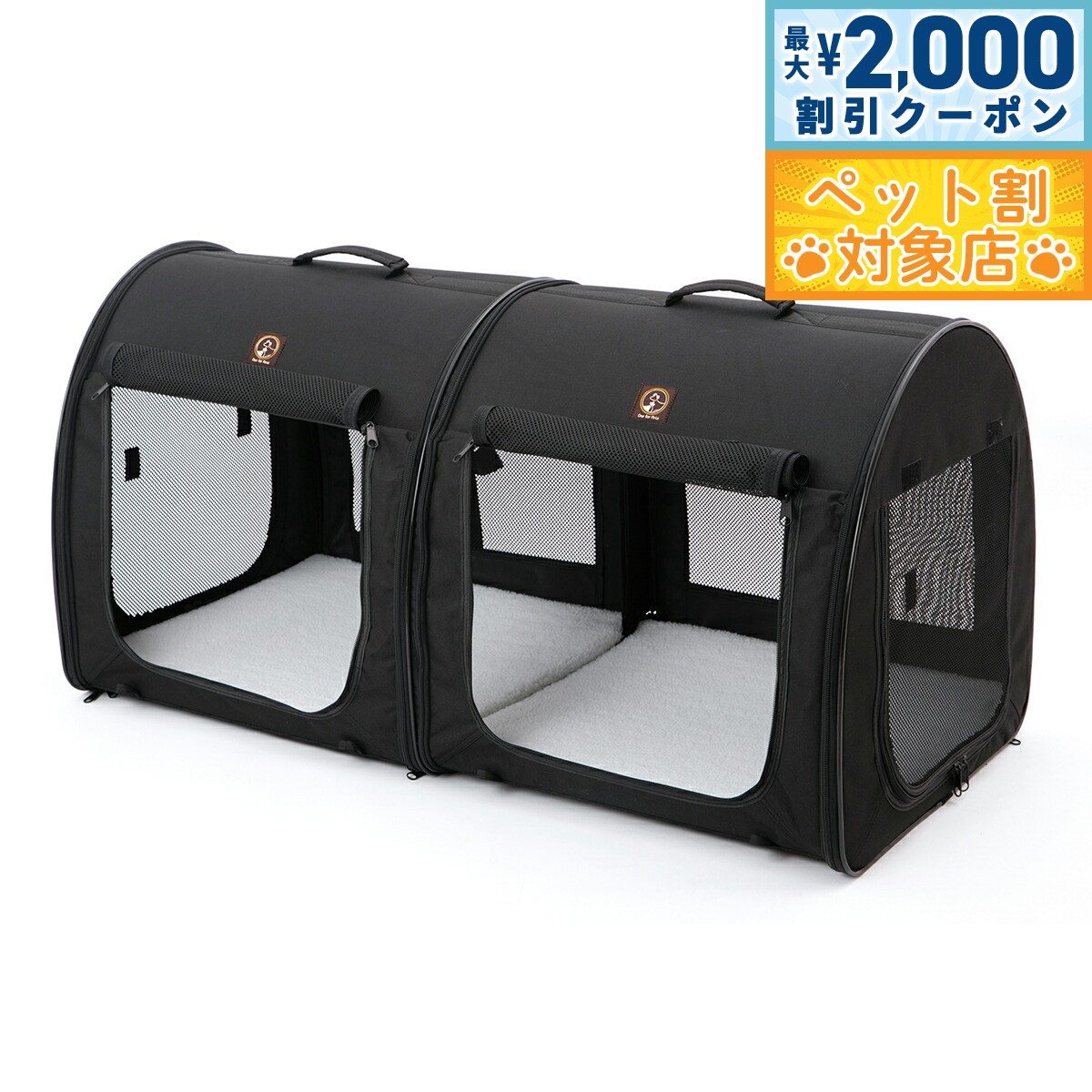 【最大2000円OFFクーポン!&店内ポイント最大60倍!スーパーSALE!】ワン フォー ペット One for Pets ポータブル ケージ ダブル オールブラック 犬 猫 折りたたみ コンパクト 持ち運び おでかけ ドライブ