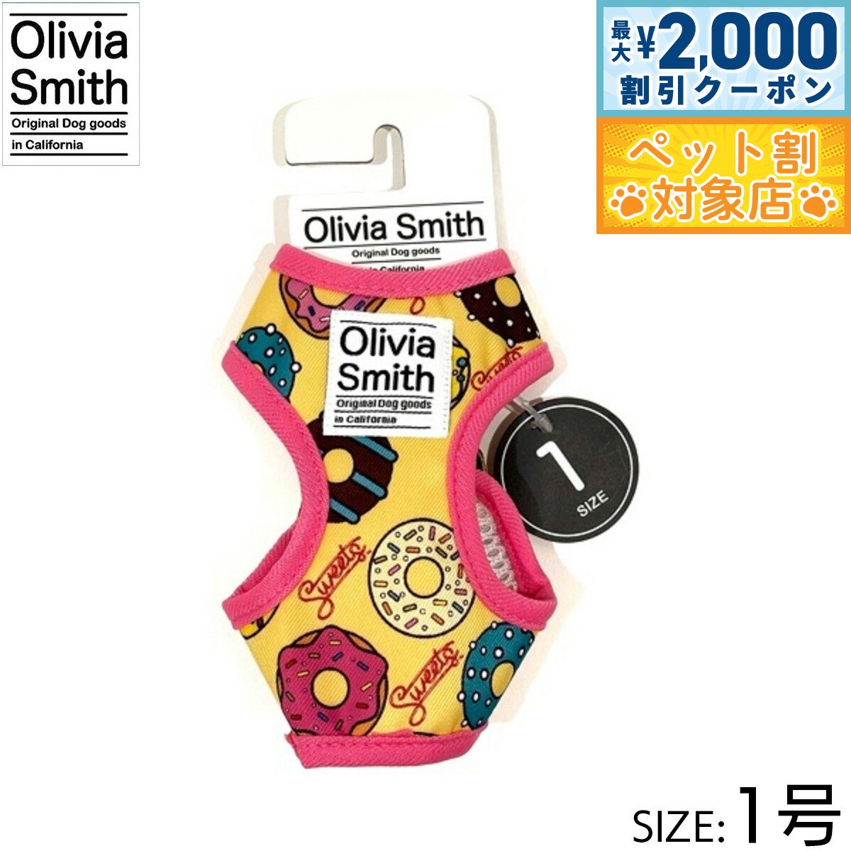【最大2000円OFFクーポン!&店内ポイント最大62倍!本日限定!】オリビアスミス ベストハーネス 1号 ドーナツ 小型犬 胴輪 3,080 ~