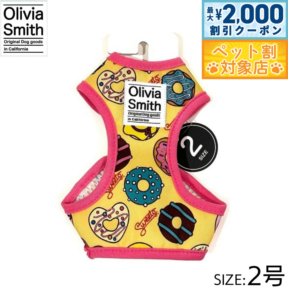 【最大2000円OFFクーポン!&店内ポイント最大62倍!本日限定!】オリビアスミス ベストハーネス 2号 ドーナツ 小型犬 胴輪 3,300 ~