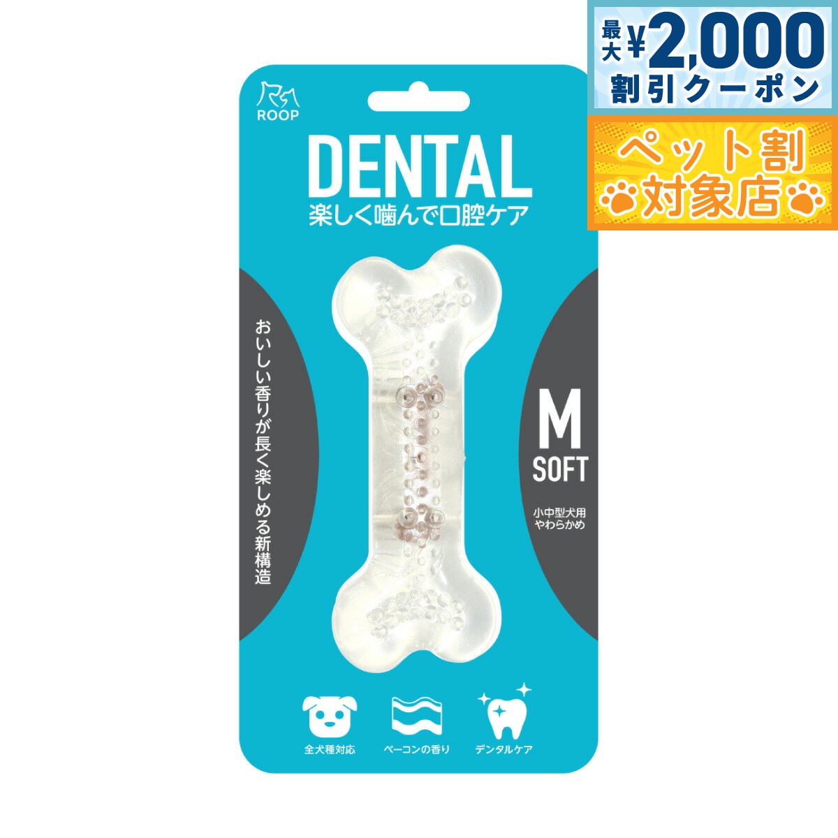 【最大2000円OFFクーポン!&店内ポイント最大60倍!スーパーSALE!】ループ ROOP 犬用おもちゃ デンタル ソフトボーン ベーコン M デンタルケア 歯磨きおもちゃ