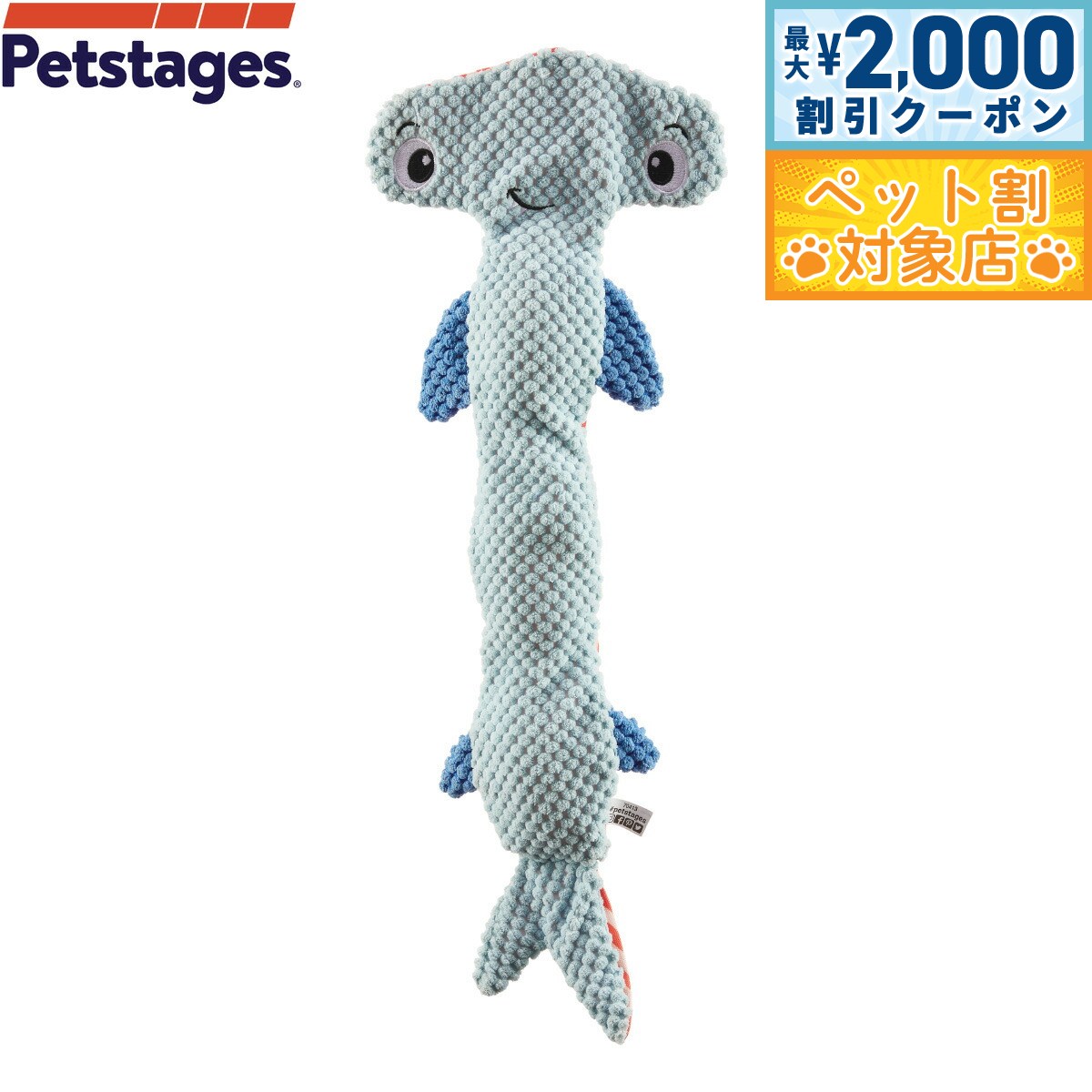 犬が大好きな「フロッピー(ぐにゃぐにゃ)」な動きのプラッシュトイ商品名ペットステージ Petstages フロッピー ハンマーヘッドシャークブランドPetstages材質ポリエステル大きさW17×D5×H48cm原産国中国 カラフルなPetstagesのおもちゃは、アメリカのシカゴ生まれ。 カワイイだけでなく動物生態学の専門家や獣医、ペットトレーナーの声から生まれたブランドです。 Petstagesは遊びを通してペットと家族の共生を願っています。 犬が大好きな「フロッピー(ぐにゃぐにゃ)」な動き3つの大きなスクイーカーにカシャカシャ音が加わり、犬の興味を惹きます引っ張り遊びで愛犬とのコミュニケーションツールとしてもお手入れ方法:固く絞った柔らかい布で拭き、よく乾かしてからご使用ください。 【ご使用上の注意点】●梱包材は開封後、直ちに捨ててください。 ペットやお子さまの誤飲、窒息など不慮の事故につながるおそれがあります。 ●本製品はペット(犬)用の玩具です。 本来の用途以外には使用しないでください。 ●飼い主の目の届く範囲で使用してください。 ●障害物や火気の近くで使用しないでください。 ●破損・変形した製品は使用しないでください。 ●万一、ペットが部品等を飲み込んだ時は、すぐに獣医師にご相談ください。 ●遊び方によっては短時間で壊れてしまう場合もあります。 ●濡れたまま放置した場合など、色落ち、色移りや破損する可能性がありますのでご注意ください。 ●使用しない時はペットやお子さまの手の届かない場所に保管してください。 対象ペット:犬本体重量68gメーカー名株式会社ダッドウェイペットペットステージ Petstages フロッピー ハンマーヘッドシャーク犬が大好きな「フロッピー(ぐにゃぐにゃ)」な動きのプラッシュトイ 【最大2000円OFFクーポン!&店内ポイント最大62倍!本日限定!】Petstages ペットステージ 犬用おもちゃ フロッピー ハンマーヘッドシャーク 3,080 ~