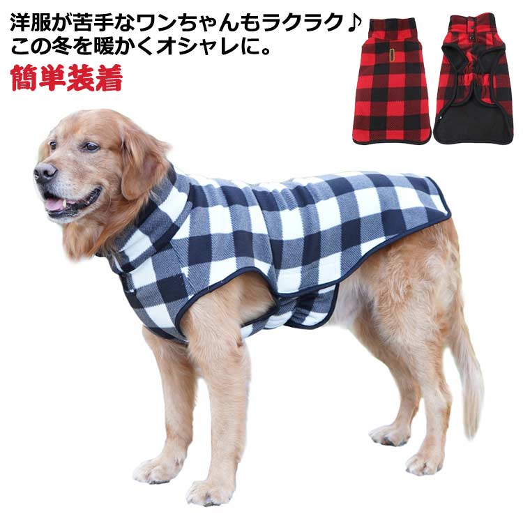 【送料無料】大型犬 犬服 フリースジャケット ドッグウェア フリースベスト コート 秋冬 犬 服 簡単装着 着せやすい マジックテープ チェック柄 送料無料 ペット服 ペットウエア 小型犬 中型犬 猫 襟付き ハイネック 洋服嫌い 4,010 ~