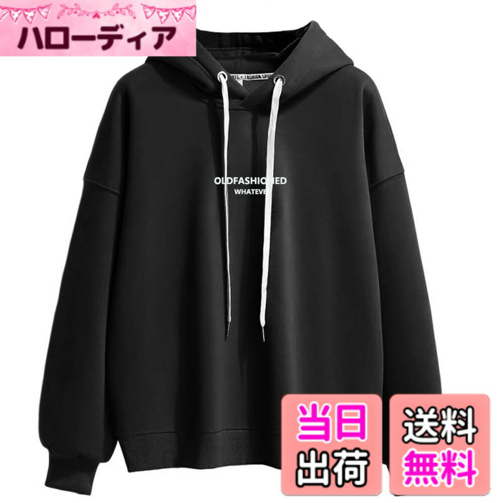 【送料無料】[JHIJSC] パーカー レディース 秋 長袖 プルオーバー ゆったり かわいい 無地 おしゃれ 大きいサイズ 色:ブラック、サイズ:L 5,096 ~