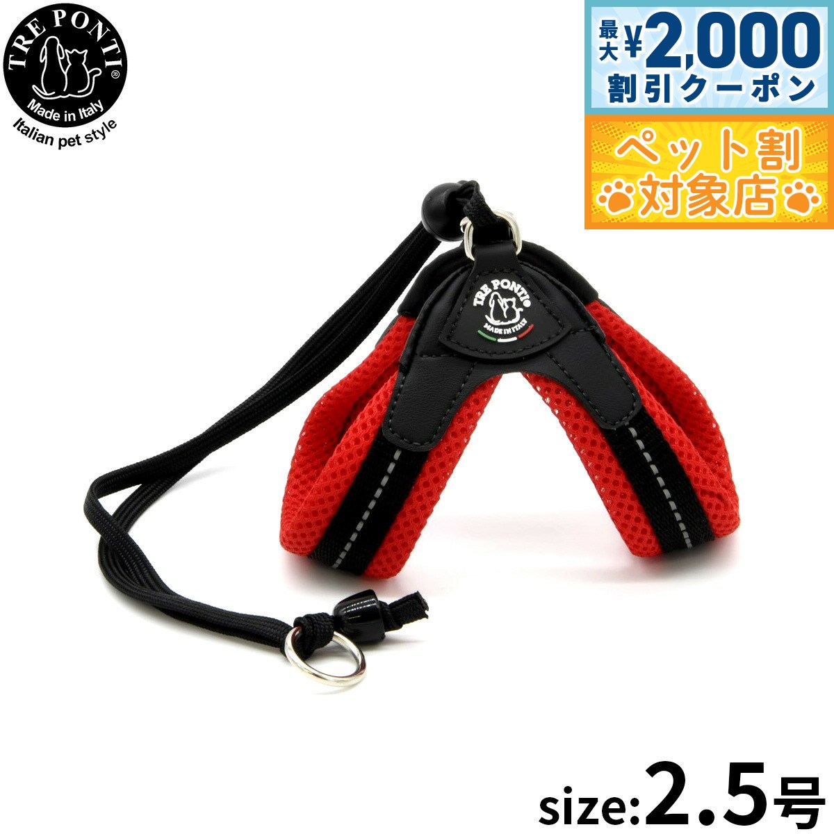 【最大2000円OFFクーポン!&店内ポイント最大62倍!本日限定!】トレポンティ TRE PONTI フィッビア アジャスタブルタイプ ソフトメッシュ ハーネス 2号 レッド 4,840 ~