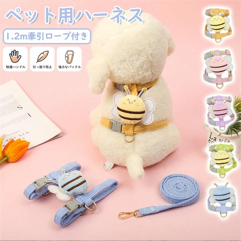 ペット用ハーネス 小型犬 犬用 ハーネス 犬具 中型犬 ネコ ウェアハーネス ハーネス 犬ハーネス 抜けない 一体型 かわいい 簡単着脱 調節可能 散歩 出かけ用 5カラー お散歩 通気性 小型犬 中型犬 かわいい 1.2m牽引ロープ付き 負担が少ない 軽量通気 引っ張り防止 4,280 ~
