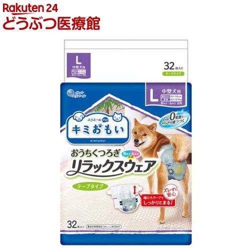 お店TOP>ペットの雑貨・ケアグッズ>キミおもい リラックスウェア テープタイプ L (32枚入×4セット)【キミおもい リラックスウェア テープタイプ Lの商品詳細】●ズレずに安心 幅ひろテープでしっかりとまる!ふんわりフィットでワンちゃん安心!●足まわりのびのびフィット構造。 いろんな体勢でも足まわりすき間知らず、モレも安心!●ぴたっとテープ。 つけ直し簡単でやさしくフィット&はずれにくい!●スピード吸収体と全面通気性シート ムレ0発想*でさらさら感つづく!*おむつの中の湿度が0%になるわけではありません。 ●お洋服との合わせ方でも楽しめる、北欧風デザイン。 室内でのリラックスシーンにぴったり。 ●フロントポケット構造!男の子の性器もしっかりカバー!お腹まわりからのモレブロック。 【使用方法】★用途・本品は犬用紙おむつです。 ・用途以外には使用しないでください。 ・本品の特性上、表面材及び吸収体が柔らかく、噛んだり引っ掻いたりすると製品が破れ中身が飛び散ることがあります。 愛犬が紙おむつを噛んだり引っ掻いたりして、破らないようご注意ください。 ★使用後の処理方法・使用後の本品の捨て方については、お住いの地域のルールに従ってください。 ・使用後は汚れた部分を内側にして、小さく丸めて不衛生にならないように処理してください。 ・トイレの詰まりを防止するために、水洗トイレに流さないでください。 ・外出時に使った紙おむつは持ち帰りましょう。 (1)リラックスウェアをひろげ、内側のギャザーをしっかりと立ててください。 (2)シッポ穴用の切込みのついた部分を背中側にもっていきます。 (3)シッポ穴用の切込みにシッポを通し、U字型の切込み部分は必ず外側に出してください。 (4)テープ部分をはずし、お腹から背中側にまわして、目印デザインを目安にテープをつけます。 (5)リラックスウェアがからだにやさしくフィットするようにテープ位置を調整します。 テープは何度でもつけ直しができます。 ※うんちをした場合は不衛生にならないように取り除き、お住まいの地域のルールに従って処理してください。 【規格概要】表面材:ポリオレフィン系不織布吸水材:綿状パルプ、高分子吸水材、ポリオレフィン系不織布止着材:ポリオレフィン防水材:ポリオレフィン系フィルム伸縮材:ポリウレタン結合材:スチレン系合成樹脂 等包材材質:ポリエチレンフィルム【注意事項】★使用上の注意・本品は使い捨ての犬用紙おむつですので、洗濯しないでください。 ・本品は食べられません。 万が一、飲み込んだ場合は、医師や獣医師にご相談ください。 ・万が一、中身を吸い込んだ場合や、目に入った場合は、医師や獣医師にご相談ください。 ・本品はハサミなどで切らないでそのままご使用ください。 中身が飛び散ったり、汚れやモレの原因となります。 ・本品は愛犬の体調や尿量、使用環境によっては機能が十分に発揮できない場合があります。 ★保管方法・火気の近く、日の当たる所及び高温多湿になる所には置かないでください。 ・開封後、ほこりや虫が入らないよう衛生的に保管してください。 ・乳幼児やペットが触れない所に保管してください。 ・本品の空き袋をおもちゃにしないでください。 【ブランド】キミおもい【発売元、製造元、輸入元又は販売元】大王製紙※説明文は単品の内容です。 リニューアルに伴い、パッケージ・内容等予告なく変更する場合がございます。 予めご了承ください。 (きみおもい/君おもい/エリエール/えりえーる/エリエールペット/えりえーるぺっと/キミオモイ/リラックスウエア/犬おむつ/ペットおむつ/犬パンツ/ドッグラン/犬お出かけ/犬散歩/犬室内犬おしっこ)・単品JAN:4902011105704・JAN:575584大王製紙102-0071 東京都千代田区富士見2丁目10番2号 飯田橋グラン・ブルーム(24階)0120-205-205広告文責:楽天グループ株式会社電話:050-5306-1825 キミおもい リラックスウェア テープタイプ L(32枚入×4セット)【キミおもい】 8,268 ~