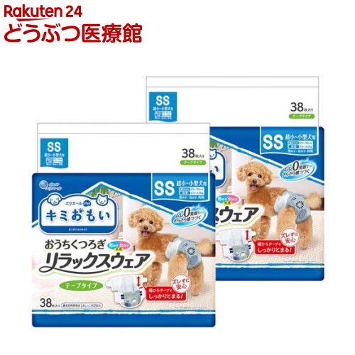 お店TOP>ペットシーツ・犬のトイレ用品>その他>キミおもい リラックスウェア テープタイプ SS (38枚入)【キミおもい リラックスウェア テープタイプ SSの商品詳細】●ズレずに安心 幅ひろテープでしっかりとまる!ふんわりフィットでワンちゃん安心!●足まわりのびのびフィット構造。 いろんな体勢でも足まわりすき間知らず、モレも安心!●ぴたっとテープ。 つけ直し簡単でやさしくフィット&はずれにくい!●スピード吸収体と全面通気性シート ムレ0発想*でさらさら感つづく!*おむつの中の湿度が0%になるわけではありません。 ●お洋服との合わせ方でも楽しめる、北欧風デザイン。 室内でのリラックスシーンにぴったり。 ●フロントポケット構造!男の子の性器もしっかりカバー!お腹まわりからのモレブロック。 【使用方法】★用途・本品は犬用紙おむつです。 ・用途以外には使用しないでください。 ・本品の特性上、表面材及び吸収体が柔らかく、噛んだり引っ掻いたりすると製品が破れ中身が飛び散ることがあります。 愛犬が紙おむつを噛んだり引っ掻いたりして、破らないようご注意ください。 ★使用後の処理方法・使用後の本品の捨て方については、お住いの地域のルールに従ってください。 ・使用後は汚れた部分を内側にして、小さく丸めて不衛生にならないように処理してください。 ・トイレの詰まりを防止するために、水洗トイレに流さないでください。 ・外出時に使った紙おむつは持ち帰りましょう。 (1)リラックスウェアをひろげ、内側のギャザーをしっかりと立ててください。 (2)シッポ穴用の切込みのついた部分を背中側にもっていきます。 (3)シッポ穴用の切込みにシッポを通し、U字型の切込み部分は必ず外側に出してください。 (4)テープ部分をはずし、お腹から背中側にまわして、目印デザインを目安にテープをつけます。 (5)リラックスウェアがからだにやさしくフィットするようにテープ位置を調整します。 テープは何度でもつけ直しができます。 ※うんちをした場合は不衛生にならないように取り除き、お住まいの地域のルールに従って処理してください。 【規格概要】表面材:ポリオレフィン系不織布吸水材:綿状パルプ、高分子吸水材、ポリオレフィン系不織布止着材:ポリオレフィン防水材:ポリオレフィン系フィルム伸縮材:ポリウレタン結合材:スチレン系合成樹脂 等包材材質:ポリエチレンフィルム【注意事項】★使用上の注意・本品は使い捨ての犬用紙おむつですので、洗濯しないでください。 ・本品は食べられません。 万が一、飲み込んだ場合は、医師や獣医師にご相談ください。 ・万が一、中身を吸い込んだ場合や、目に入った場合は、医師や獣医師にご相談ください。 ・本品はハサミなどで切らないでそのままご使用ください。 中身が飛び散ったり、汚れやモレの原因となります。 ・本品は愛犬の体調や尿量、使用環境によっては機能が十分に発揮できない場合があります。 ★保管方法・火気の近く、日の当たる所及び高温多湿になる所には置かないでください。 ・開封後、ほこりや虫が入らないよう衛生的に保管してください。 ・乳幼児やペットが触れない所に保管してください。 ・本品の空き袋をおもちゃにしないでください。 【ブランド】キミおもい【発売元、製造元、輸入元又は販売元】大王製紙リニューアルに伴い、パッケージ・内容等予告なく変更する場合がございます。 予めご了承ください。 (きみおもい/君おもい/エリエール/えりえーる/エリエールペット/えりえーるぺっと/キミオモイ/リラックスウエア/犬おむつ/ペットおむつ/犬パンツ/ドッグラン/犬お出かけ/犬散歩/犬室内犬おしっこ)・JAN:4902011105674大王製紙102-0071 東京都千代田区富士見2丁目10番2号 飯田橋グラン・ブルーム(24階)0120-205-205広告文責:楽天グループ株式会社電話:050-5306-1825[その他/ブランド:キミおもい/] キミおもい リラックスウェア テープタイプ SS(38枚入)【キミおもい】 2,088 ~