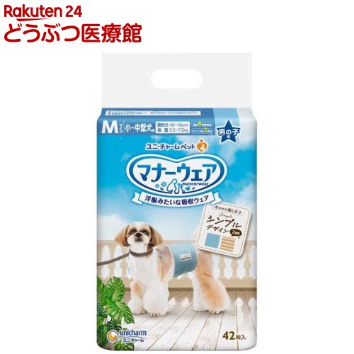 お店TOP>犬用品>ペットシーツ・犬のトイレ用品>犬のオムツ・紙パンツ>犬の紙オムツ>マナーウェア 男の子用 M トラッドテイスト 犬用 おむつ ユニチャーム (42枚入*8袋)お一人様20セットまで。【マナーウェア 男の子用 M トラッドテイスト 犬用 おむつ ユニチャームの商品詳細】●ドライブ・おでかけ・おうちでも!マーキング・オシッコ対策に安心●のびのびフィットで動きやすい。●のび〜る胴回りギャザーでのびのび動ける!●速乾サラサラ吸収体でお肌サラサラ●くるっと巻くだけフィット!ズレにくい●調節ラクラクテープ搭載●トラッドテイストな2種のデザイン入り。●最長6時間吸収※健康なワンちゃんの6時間の平均おしっこ量を参考(ワンちゃんのおしっこ量には個体差があります)【規格概要】表面材:ポリオレフィン・ポリエステル不織布/吸水材:綿状パルプ、高分子吸水材、吸水紙/防水材:ポリエチレンフィルム/止着材:ポリオレフィン/伸縮材:ポリウレタン/結合材:ホットメルト接着剤/外装材:ポリエチレン【ブランド】マナーウエア【発売元、製造元、輸入元又は販売元】ユニ・チャーム ペットケア※説明文は単品の内容です。リニューアルに伴い、パッケージ・内容等予告なく変更する場合がございます。予めご了承ください。(マナーウェア 犬用 おむつ 男の子用 Mサイズ 小型犬用 中型犬用 42枚 おしっこ 生理 介護用 ペット用品 ユニ・チャームペット)・単品JAN:4520699676226ユニ・チャーム ペットケア東京都港区三田3-5-19住友不動産三田ガーデンタワー0120-810-539広告文責:楽天グループ株式会社電話:050-5306-1825[犬用品/ブランド:マナーウエア/] マナーウェア 男の子用 M トラッドテイスト 犬用 おむつ ユニチャーム(42枚入*8袋)【d_ucd】【マナーウエア】 15,694 ~