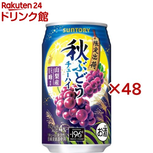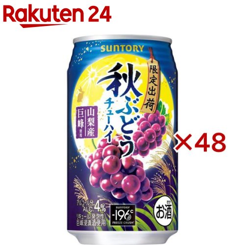 お店TOP>アルコール飲料>アルコール飲料 その他>サントリー チューハイ -196度 秋ぶどう 缶 (24本入×2セット(1本350ml))【サントリー チューハイ -196度 秋ぶどう 缶の商品詳細】●アルコール度数:4.0%●チューハイ(秋ぶどう)が登場。 山梨県産「巨峰」を使用した、華やかな甘みと優しい酸味のある味わい。 【品名・名称】リキュール(発泡性)(1)【サントリー チューハイ -196度 秋ぶどう 缶の原材料】ぶどう、スピリッツ、糖類(国内製造)【栄養成分】100mlあたりエネルギー 47kcal 、たんぱく質 0g 、脂質 0g 、炭水化物 6.0g食塩相当量0.01〜0.05g【保存方法】常温【原産国】日本【ブランド】-196度 ストロングゼロ【発売元、製造元、輸入元又は販売元】サントリー20歳未満の方は、お酒をお買い上げいただけません。 お酒は20歳になってから。 ※説明文は単品の内容です。 リニューアルに伴い、パッケージ・内容等予告なく変更する場合がございます。 予めご了承ください。 ・単品JAN:4901777306660サントリー〒135-8631 東京都港区台場2-3-303-5579-1000広告文責:楽天グループ株式会社電話:050-5306-1825[アルコール飲料/ブランド:-196度 ストロングゼロ/] サントリー チューハイ -196度 秋ぶどう 缶(24本入×2セット(1本350ml))【-196度 ストロングゼロ】 6,089 ~