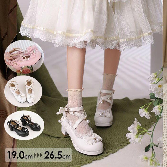 ロリータ靴 レディースシューズ パンプス メイド靴 可愛い 姫様 ロリータ リボン付き 日常 文化祭 イベント 美脚 お茶会 通学 ベルト付 ストラップ コスプレ 小さいサイズ 大きいサイズ シューズ ブラウン ブラック ワインレッド ホワイトグローリーパーク 6,880 ~