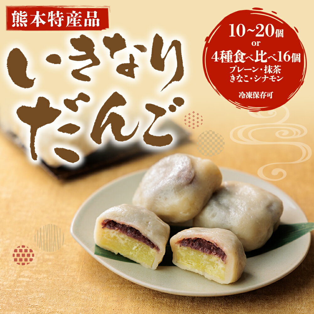 昔ながらの手作り。熊本の郷土菓子『いきなりだんご』 阿蘇の道の駅でも販売中の人気商品「いきなり団子」がご自宅で楽しめるセットです。 さつまいもとあんこを、米粉と小麦粉を使った団子生地で包み、蒸し上げた熊本の郷土菓子。 もちもちとした生地と、お芋とあんこのやさしい甘みが調和した、どこか懐かしい味わいです。 冷凍便でお届けします。 食べる分だけ電子レンジなどで温めて、できたての風味をお楽しみください。 まずは気軽に、定番の味わい 定番のプレーン味だけを詰め合わせた10個セット。 いきなり団子を初めて試してみたい方や、ご家庭用のおやつにおすすめです。 さつまいもとあんこのバランスを、シンプルに楽しめます。 家族で楽しむ、たっぷりサイズ。 定番の味をたっぷり楽しめる20個セット。 ご家族のおやつや、来客時のお茶菓子、おすそ分けにも使いやすい内容です。 冷凍保存できるので、食べたい分だけ温めてお召し上がりいただけます。 今日はどの味?選ぶ楽しみの食べ比べ。 プレーンに加え、抹茶・シナモン・きなこの4種類を詰め合わせた食べ比べセット。 それぞれの風味が、さつまいもとあんこの甘みを引き立てます。 ご自宅用はもちろん、贈り物にも選びやすいセットです ●プレーン味…さつまいもとあんこの組み合わせを楽しめる定番の味。熊本で親しまれている人気の味です。 ●抹茶味…まろやかなこしあんとさつまいもの甘味が、抹茶の風味が甘さを引き締め、調和のとれた美味しいいきなり団子です。 ●シナモン味…甘いあんこにふんわりシナモンの香りがアクセント ●きな粉味…阿蘇産の大豆を使用し、香ばしさを引き立てたきな粉を団子に練りこんだ懐かしい味です 商品説明名称いきなりだんご 内容量いきなりだんご10個セット:プレーン×10、いきなりだんご20個セット:プレーン×20、いきなりだんご4種16個セット:プレーン×4・抹茶×4・シナモン×4・きな粉×4(各70g) 原材料名■ プレーン味…米粉(阿蘇産)、小麦粉(国内産)、さつまいも(菊池郡大津町産)、小豆(北海道)、砂糖、塩(一部に小麦、大豆を含む) ■ 抹茶味…米粉(阿蘇産)、小麦粉(国内産)、さつまいも(菊池郡大津町産)、小豆(北海道)、砂糖、塩、抹茶(一部に小麦、大豆を含む) ■ シナモン味…米粉(阿蘇産)、小麦粉(国内産)、さつまいも(菊池郡大津町産)、小豆(北海道)、砂糖、塩、シナモン(一部に小麦、大豆を含む) ■ きな粉味…米粉(阿蘇産)、小麦粉(国内産)、さつまいも(菊池郡大津町産)、小豆(北海道)、砂糖、塩、きな粉(一部に小麦、大豆を含む) 原産地熊本県阿蘇市 加工地熊本県阿蘇市 賞味期限冷凍で1ヶ月 アレルギー表示小麦、大豆 保存方法 冷凍(直射日光や高温多湿を避け、保存してください。開封、解凍後はお早めにご賞味ください。) 栄養成分表示いきなり団子1個(約70gあたり)…エネルギー126kcal、たんぱく質2.28g、脂質0.34g、炭水化物29.29g、食塩相当量0.07g 製造者甘味屋喜び 熊本県阿蘇市黒川1105-3 ・ふるさと納税よくある質問はこちら ・寄附申込みのキャンセル、返礼品の変更・返品はできません。あらかじめご了承ください。 【阿蘇の特産品をご自宅でも!】いきなり団子 あんこ サツマイモ ふるさと納税 熊本 贅沢 贈り物 贈答用 もちもち 美味しい お祝い ギフト 贈答用 おもてなし 人気 グルメ 満足 いきなり団子 ふるさと納税 【美味しいいきなり団子で特別な日をさらにハレの日にしませんか!】 お祝い 御祝 お礼 御礼 返礼 快気 快気 内祝い 出産 結婚 新築 開店 開業 父の日 母の日 お中元 御中元 敬老の日 お歳暮 御歳暮 クリスマス 卒業式 卒業祝い 入学式 入学祝い お花見 こどもの日 端午の節句 母の日 お年賀 寒中見舞い 退職 就職 贈答品 ギフト 誕生日 プレゼント 贈り物 親戚 還暦 古希 喜寿 傘寿 米寿 快気祝 お見舞 【こんな方へおすすめ!】 女性 男性 一人暮らし 単身赴任 お父さん お母さん 兄弟 姉妹 子供 おばあちゃん おじいちゃん 祖父 祖母 先生 職場 上司 先輩 後輩 同僚 目上 親戚 高齢 年配 主婦 ママ 新生活 【季節のご挨拶に】 お正月 御正月 正月 年賀 御年賀 お年賀 父の日 母の日 ひな祭り 雛祭り 子どもの日 御中元 お中元 中元 盆 お盆 残暑見舞い クリスマスプレゼント クリスマス お歳暮 御歳暮 【様々な行事に】 御開店祝い 開店祝い 来客 異動 退職 挨拶周り 贈答用 贈り物 ギフト 手土産 お土産 土産 記念品 バレンタインデー ホワイトデー 御礼 謝礼 お返し お祝い返し 御見舞い御礼いただきました寄付金は、阿蘇市の全般的な事業として大切に使わせていただきます。 入金確認後、注文内容確認画面の【注文者情報】に記載の住所にお送りいたします。 発送の時期は、寄附確認後2ヵ月以内を目途に、お礼の特産品とは別にお送りいたします。 【ふるさと納税】熊本郷土スイーツ いきなりだんご 定番の味 10個 20個 食べ比べセット いきなり団子 16個 阿蘇 スイーツ スウィーツ あんこ サツマイモ 抹茶 きな粉 シナモン 和菓子 熊本県 阿蘇市 9,000 ~