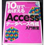 単行本/B5変型判/391頁/2592円(税込) アンク(著)/翔泳社(刊)/2005年4月初版(発行) Accessによるデータベース作成の10日間レッスンブック。 バージョン2003/2002/2000対応。 はじめてAccessを使う人やデータベース作成の初心者を対象に、実務に使えるしっかりとしたデータベースを作成できるよう、その基本概念からAccessの操作、作成の基本や運用方法までていねいに解説。 サンプルデータはダウンロード可。