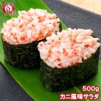 カニ風味サラダ(寿司ネタ用かに風味サラダ・500g) かに風味サラダ(惣菜) 500g 魚肉ねり製品(魚肉(いとより、たら)、かに肉、植物油脂、食塩、砂糖、発酵調味料、卵白、たん白加水分解物、かにエキス、ほたてエキス)、半固体状ドレッシング、たまねぎ、植物油脂、醸造酢、ぶどう糖果糖液糖、食塩、加工でん粉、増粘剤(加工でん粉、増粘多糖類)、調味料(アミノ酸等)、貝Ca、着色料(紅麹)、香辛料、(原材料の一部に小麦、乳成分、えび、大豆、りんご、ゼラチン、魚介類を含む) パッケージに記載 -18℃以下で保存 冷蔵庫で解凍、流水解凍、湯煎解凍。 解凍後そのままお召し上がり下さい。 ※解凍後の賞味期限 ・開封後は、賞味期限に関わらず、お早めにお召し上がり下さい。