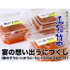 函館竹田食品の人気商品「数の子うに・いかうに・うにくらげ」がセットになった商品です。 ご贈答にもおすすめの逸品です。 宴の想い出うにづくし(3点セット) 240g(80g×3) 枠外側面に記載。 冷蔵保存で30日。 要冷蔵(10℃以下)。 クール冷凍便 ・うにくらげ/原材料の一部に乳、ゼラチンを含む。 ・いか白造り/原材料の一部に乳、ゼラチンを含む。 ・手造りいか塩辛/原材料の一部に乳、ゼラチンを含む。 |