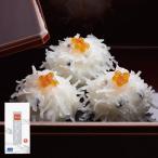 1個1個がとてもボリュームがあります。 新鮮なふくの身をすりつぶし白身魚すり身でつなぎ合わせ特性のだしで仕上げました。 ふんわりとした食感と口の中で広がるまろやかな風味をお楽しみ下さい。 お好みによりポン酢・もみじおろし又はからし等をご利用頂くと一層美味しくいただけます。 蒸す場合・・・冷凍のままお皿に移して15〜20分蒸してお召し上がりください。 電子レンジの場合・・・一端水に浸してお皿にのせラップを掛けて目安として(1個につき60秒位)加熱してください。