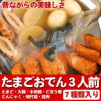■商品内容:たまごおでん3袋(1袋350g×3) ■賞味期限:常温保存で製造日から180日 ■お召し上がり方:袋のまま熱湯で5〜6分、または中身を容器に移して電子レンジで約3分※電子レンジの場合は玉子を切ってから加熱してください。 ■出荷場所:東京都より直送 ■配送形態:常温便 ■出荷日:ご注文後順次出荷いたします。 1袋におでん種がたっぷり7種類!こだわりのダシの旨みが凝縮した昔ながらの美味しさのおでんです!具材は「たまご」「大根」「小判揚」「ごぼう巻」「こんにゃく」「焼竹輪」「昆布」の7種類。 1人前約350g入り×3袋セットでお届けいたします。