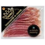 パルマの代表的なプロシュート。 16ケ月も熟成させてから、骨を抜き更に3ケ月熟成合計19ケ月の長い間パルマの風に当てたその風味は他にございません。 「ピオ・トジーニ」では熟成庫の窓を開閉し、生ハム熟成に最良と言われるアペニン山脈から 吹き降りる冷たい山風(パロマ谷の風)によって熟成させる伝統製法を守り続けています。 1パック約7-8枚入りです。 冷凍をし、中にフィルムを入れているため一枚一枚が剥がしやすいというのがこの商品の特長です。 スライスですと風味の弱い生ハムが多い中、原木切りたてのような濃い熟成香が感じられる特別な商品です。 ヤフーのシステム上、カート内では常温での配送料金が表示されてしまいます。 ご注文いただきまして後、弊店ではお客様にお知らせし、手動で250円のクール料金加算させて頂いております。 ご不便お掛け致しますがご了承ください。