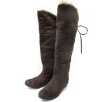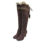 エフエムティ fmt ブーツ ニーハイ スエード調 スタッズ ファー リボン タッセル 茶 23.5 ....... |