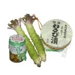伊豆・天城のわさび沢で栽培された新鮮な本わさび(生わさび)[1,000円]2本と最高級金印わさび漬け・わさびのしょうゆ漬けのセットです!本場の味を是非お試し下さい!ギフトにもどうぞ! |