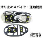 - この商品ページはネコポス便専用です。 商品代金+送料の価格となっております。 ※「代引き」・「複数の商品の同梱」できません。 以下の場合は宅配便でご注文ください ・お急ぎの方 ・代引きご利用の方 ・複数個を購入の方(宅配便送料1個分) ・他の商品と同梱を希望される方(宅配便送料1個分) 雪上用すべり止めスパイク運動靴スニーカー用6本爪タイプ 左右1対のセット 色:黒 サイズ およそ22cmから26cmの靴に適合。 運動靴やスニーカー、ウォーキングシューズに適した歩き易い構造。 ピンの形状をしたスパイクが使用されています。 爪型の形状をしたスパイクよりも刃の長さは短いのですが、動き易くなっています。 丈夫でよく伸びる、しなやかなゴムに、6個のスパイクがついています。 足の指の付け根付近と、かかとにピンが付いているので、凍結路面での運動性能が高くなっています。