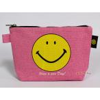 根強い人気のスマイリーのコットンポーチです。 マチ付きでコスメポーチや文具ケースにおすすめです。 サイズ(約):幅20cmx13cm(たたんだ状態)/マチ14cmx5.5cm 素材:コットン デザイン:スマイリー・フェイスピンク 商品毎に多少、柄の位置が異なります。 製造上のプリント擦れや色トビはご容赦ください。 ご覧の環境で多少色が異なります。 写真のMサイズ玉子やコイン等は大きさ確認用で付属していません。